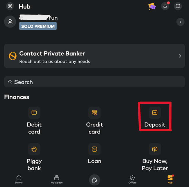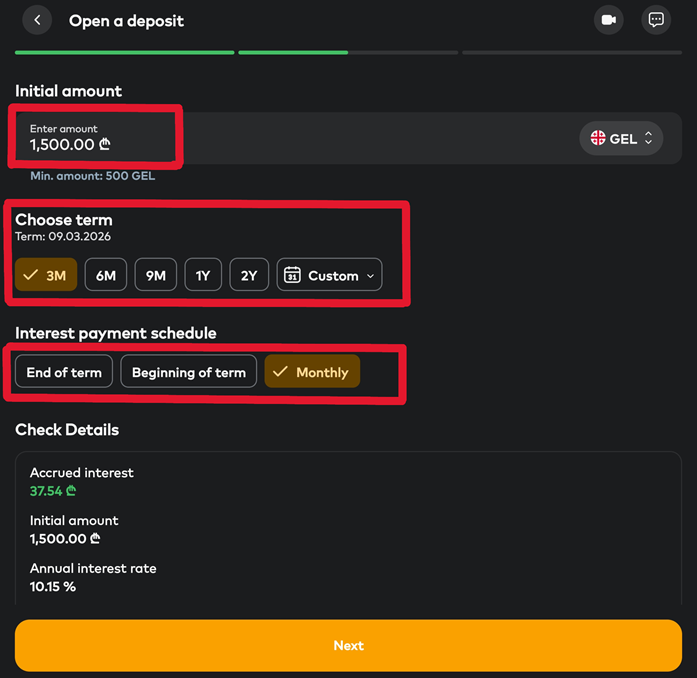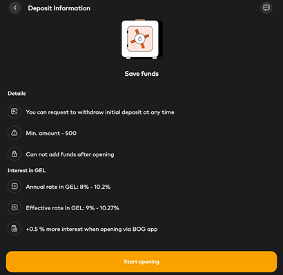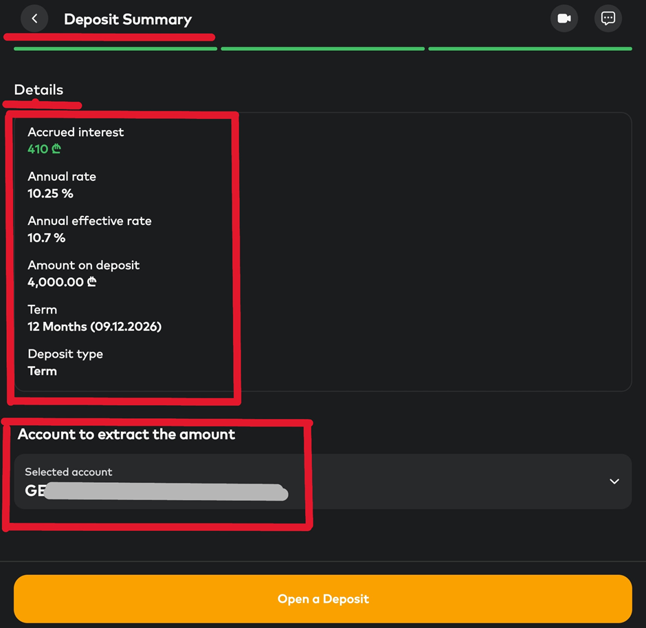 하단에 내계좌 선택 후 [ Open a Deposit ] 클릭