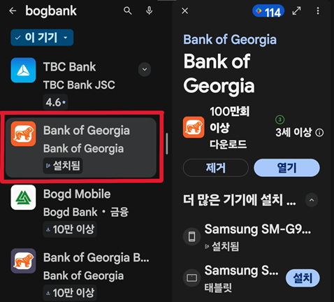 1) Play스토어 [BOG bank]검색 > 앱 설치
